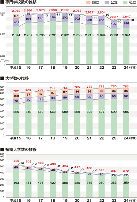 データ資料: 平成15~24年度の学校基本調査報告書<文部科学省>