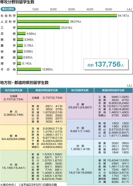 | データ資料: | 「平成24年度外国人留学生在籍状況調査結果」独立行政法人日本学生支援機構 |