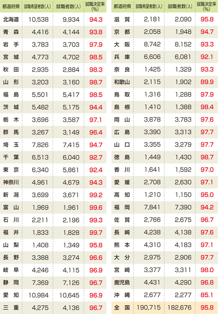 平成25年(2013年)3月高等学校卒業者の就職状況