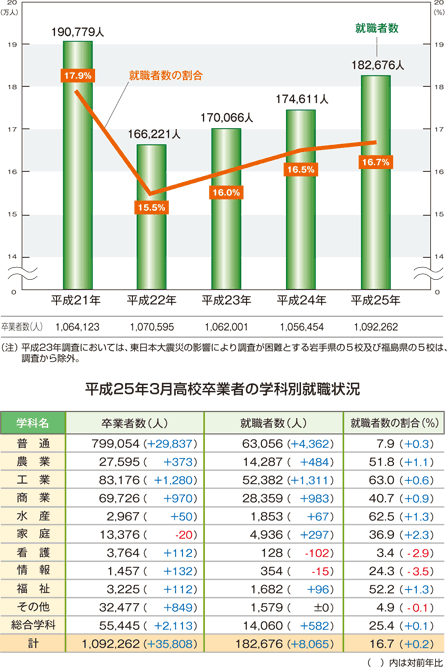 データ資料: 「平成25年3月高等学校卒業者の就職状況(平成25年3月末現在)に関する調査について」