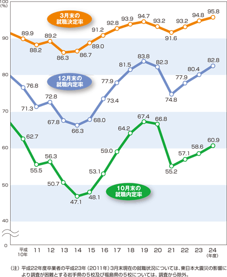 調査時期: 各年の10月末現在、12月末現在、翌年3月(卒業月)末現在