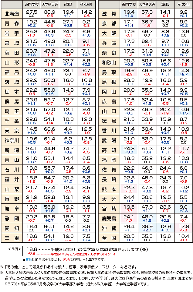 | データ資料: | 平成25年度学校基本調査(平成25年12月発行)より <文部科学省生涯学習政策局政策課調査統計企画室発行> |