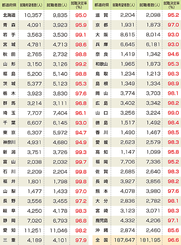 | 平成26年(2014年)3月高等学校卒業者の就職状況 |