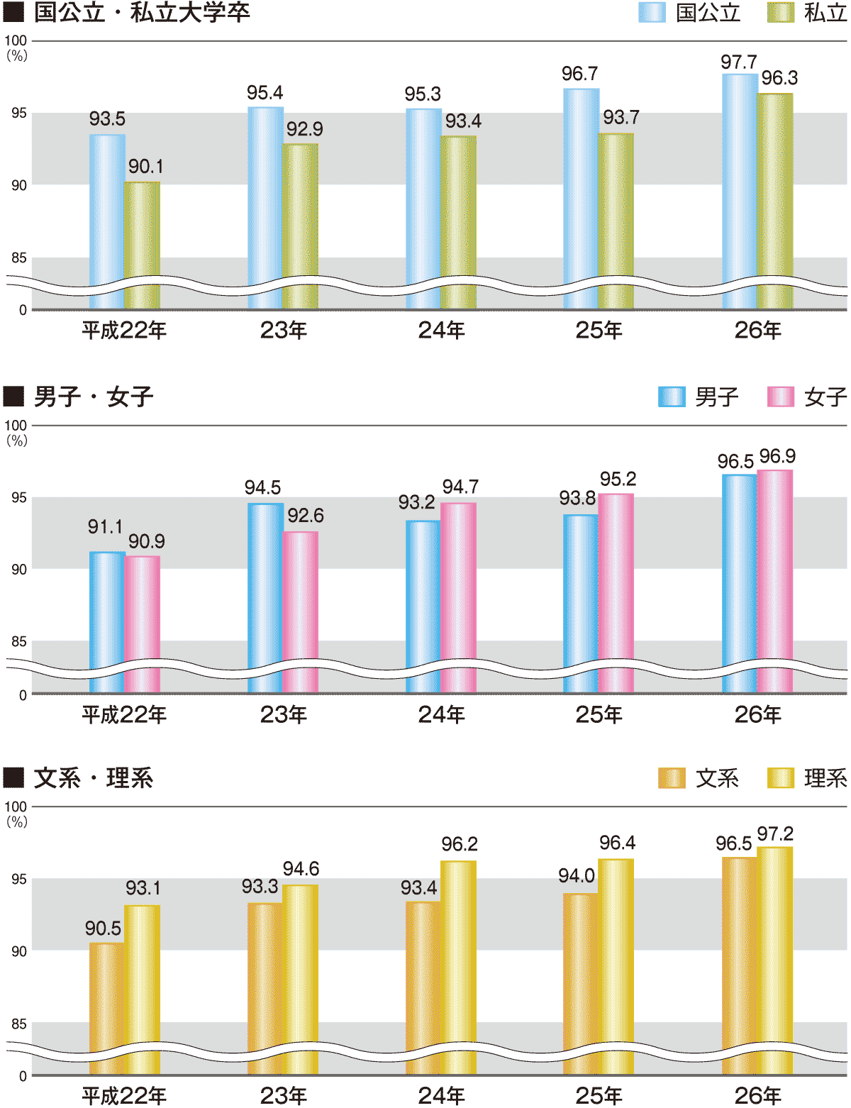 データ資料:「大学等卒業者の就職状況調査」より<厚生労働省>