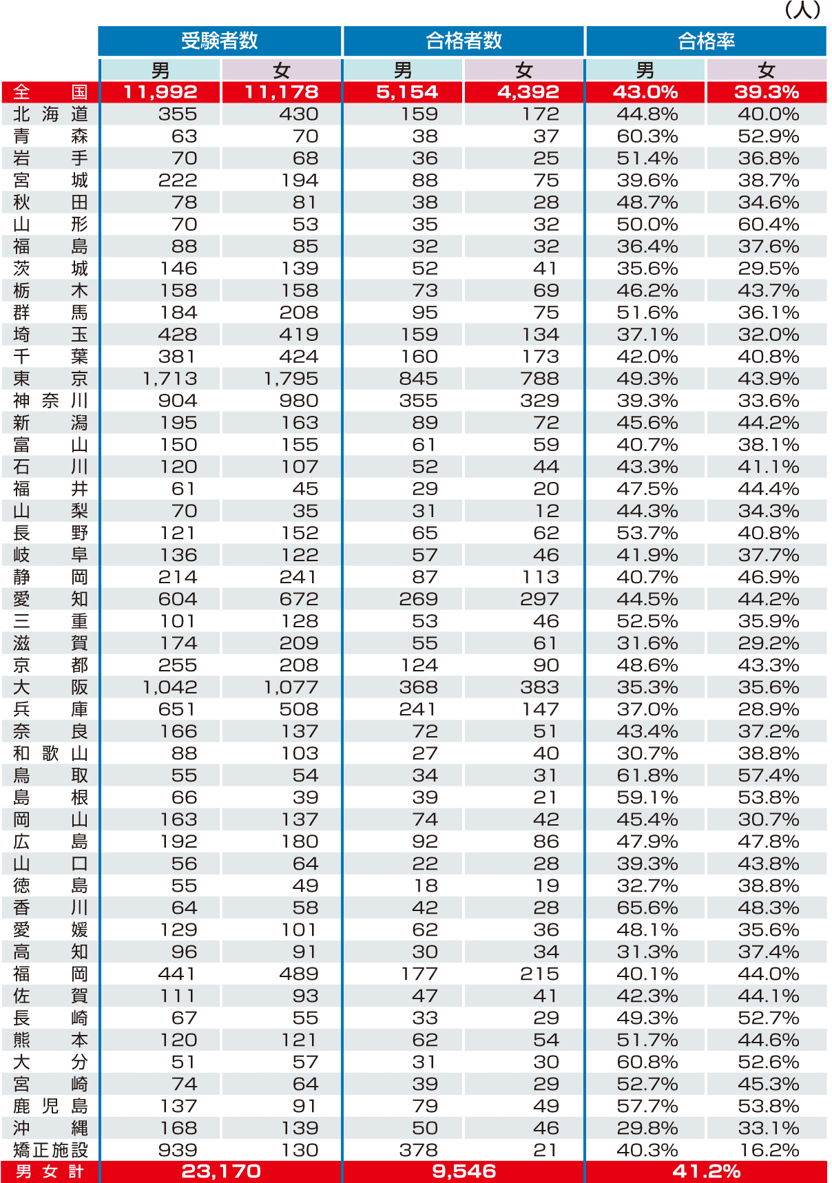 都道府県別 平成25年度高卒認定試験実施結果