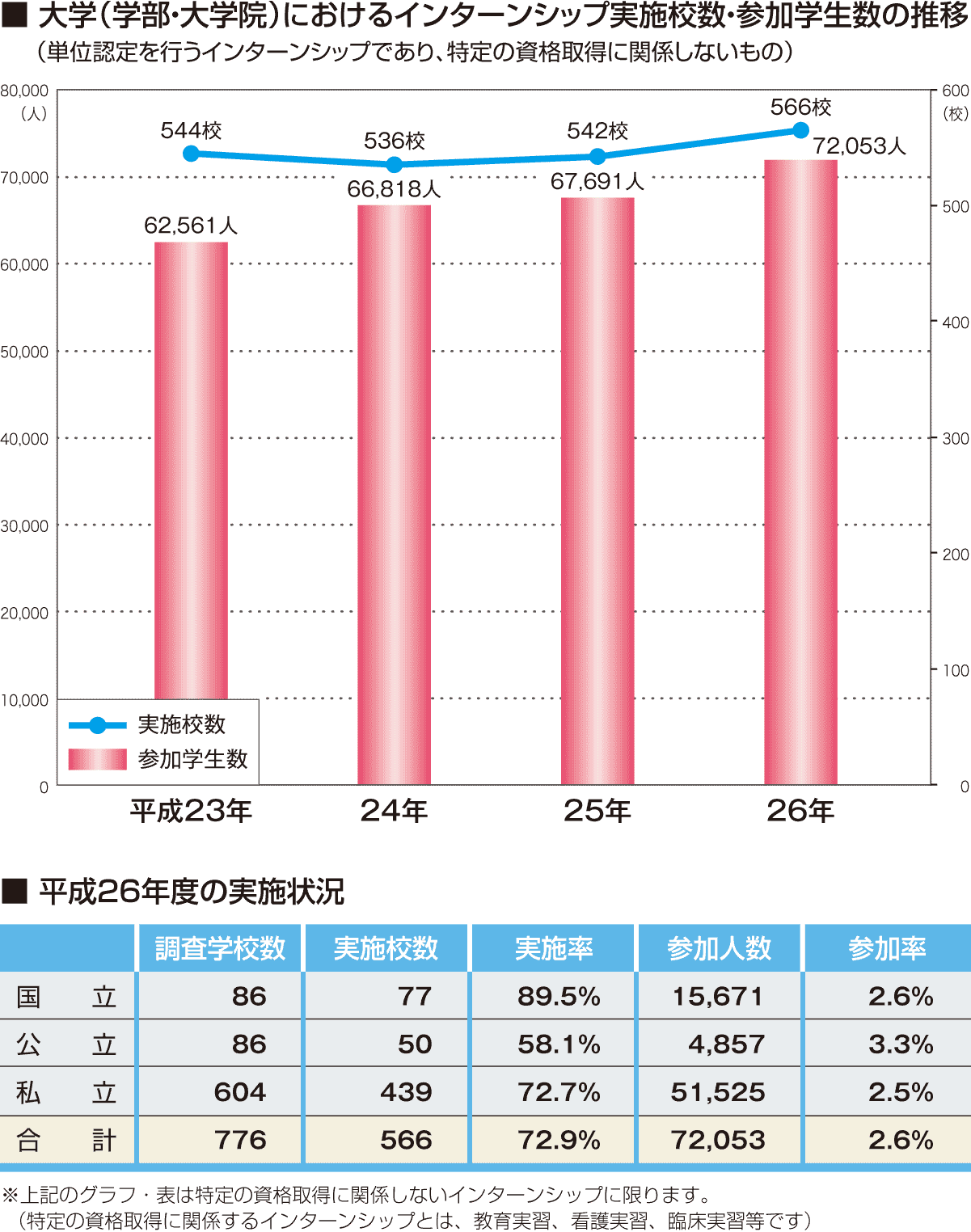 出   典: 文部科学省ホームページ「平成26年度大学等におけるインターンシップ実施状況について」