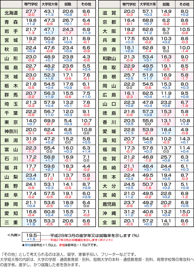 | データ資料: | 平成28年度学校基本調査(文部科学省ホームページ・平成28年12月発表)より表にして作成 |