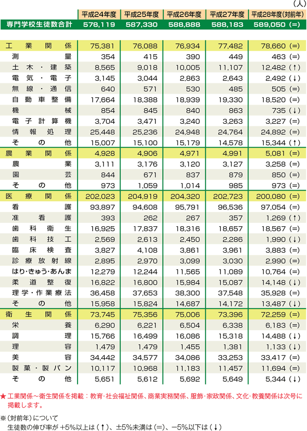 専門学校 ジャンル別生徒数(1)