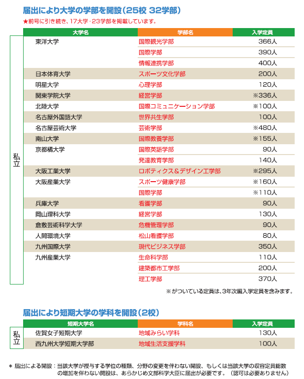 平成29年度開設予定の大学の学部等の設置届出一覧 <文部科学省ホームページより表にして作成> |