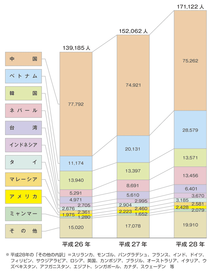 データ資料: 「平成28年度外国人留学生在籍状況調査結果」