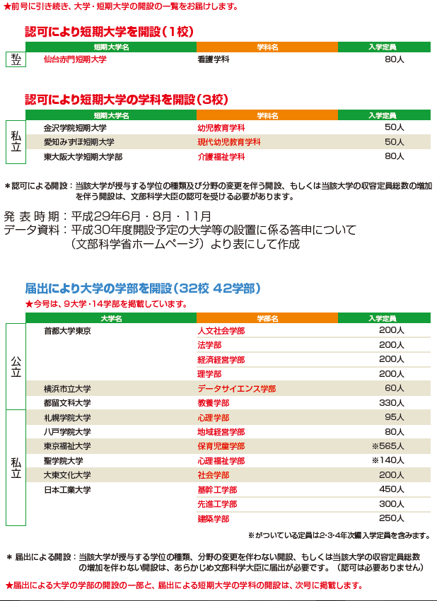 | データ資料: | 平成30年度開設予定の大学の学部等の設置届出について (文部科学省ホームページ)より表にして作成 |