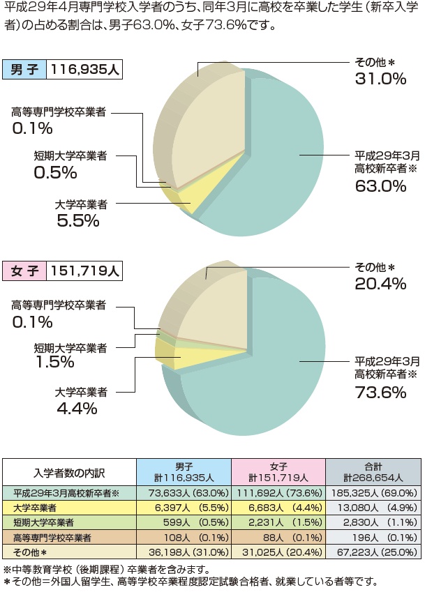 専門学校入学者の内訳と入学者数