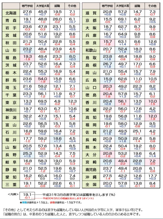 | データ資料: | 令和元年度学校基本調査(文部科学省ホームページ・令和元年12月 発表より表にして作成) |