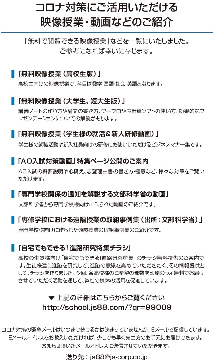 コロナ対策にご活用いただける映像授業・動画などのご紹介