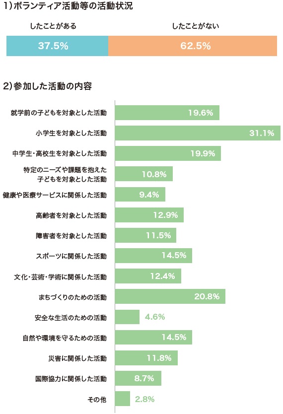 | データ資料:「大学生のボランティア活動等に関する調査」報告書 国立青少年教育振興機構のホームページより |