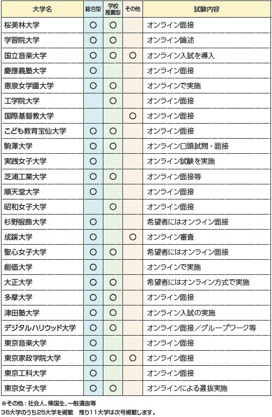 | 東京都の大学でオンライン入試を実施する大学一覧 |