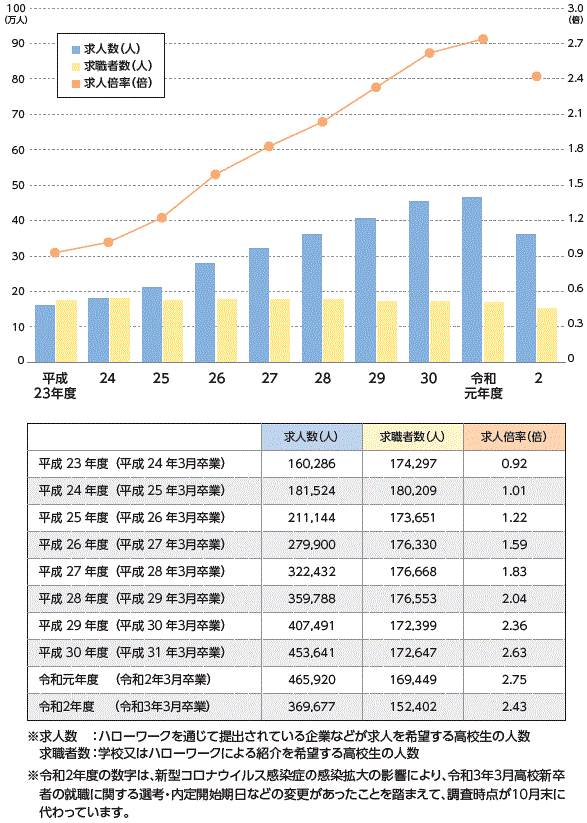 データ資料: 令和2年度「高校・中学新卒者のハローワーク求人に係る求人
