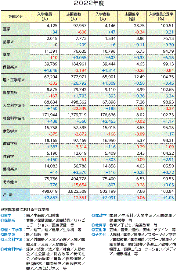 | データ資料 | : | 「令和4(2022)年度私立大学・短期大学等入学志願動向」 日本私立学校振興・共済事業団 私学振興事業本部のホームページより表にして作成 |