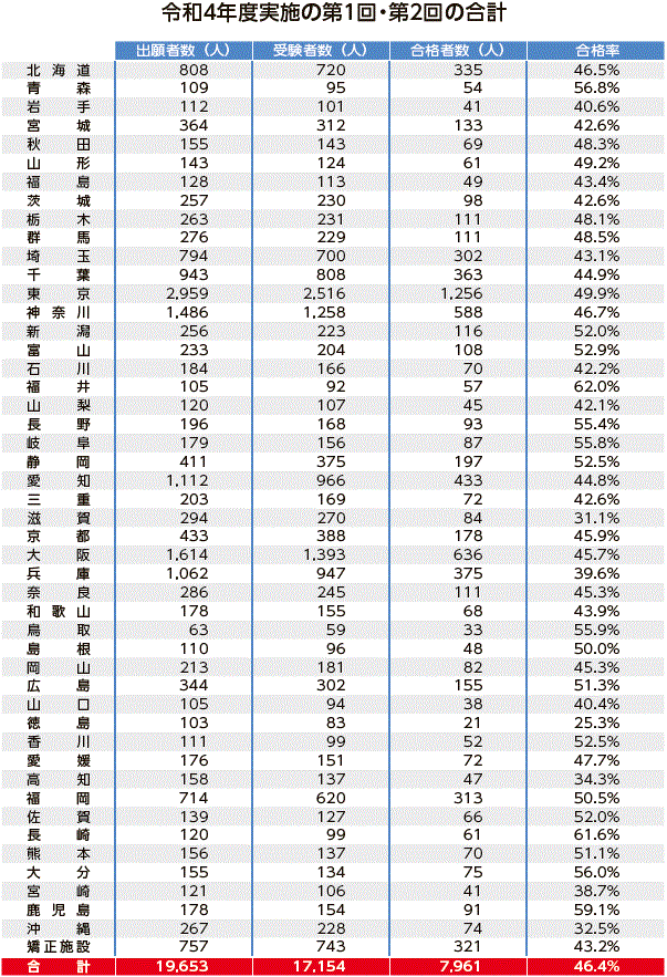 データ資料 令和4年度第1回・第2回高等学校卒業程度認定試験実施結果」(文部科学省ホームページ)より表にして作成
