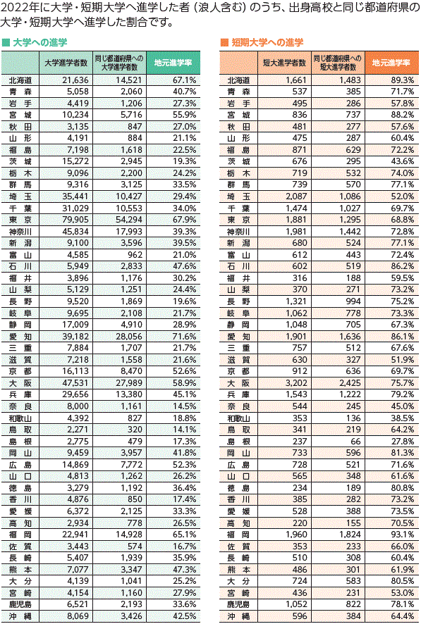 地元進学率:同じ都道府県の大学・短大へ進学した割合