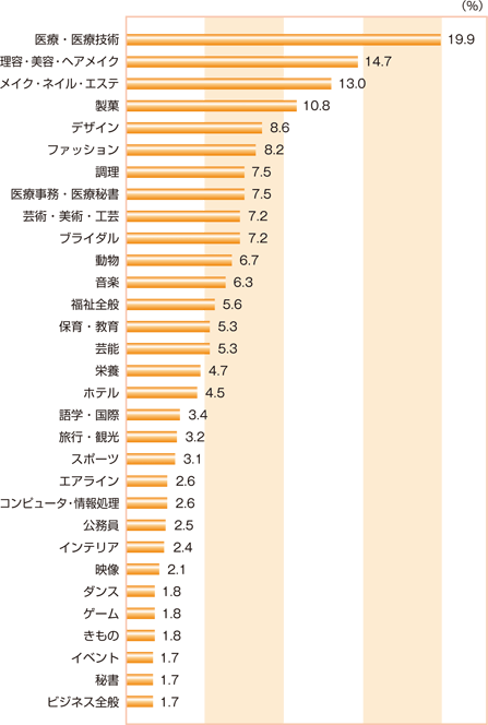 | 調査時期:平成20年6月 調査対象:専門学校進学希望の女子高校生1,435人 データ資料:小社実施のアンケート調査結果より |