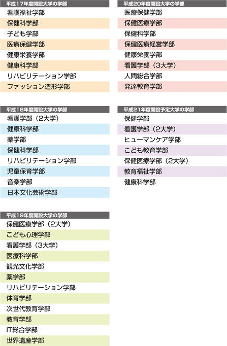 | データ資料: | 各年の開設予定大学等一覧<文部科学省> |