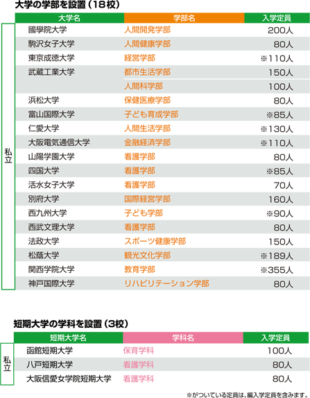 大学の学部・短期大学の学科 開設一覧(認可による開設)