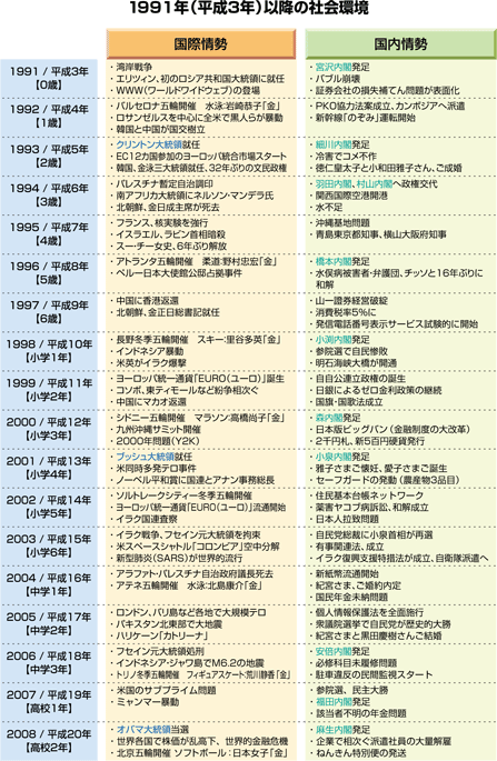 WWW(ワールドワイドウェブ)が登場した年に、現在の高校3年生は生まれました。彼らの育った時代背景を理解するための一助として、ご高覧いただければ幸いです。