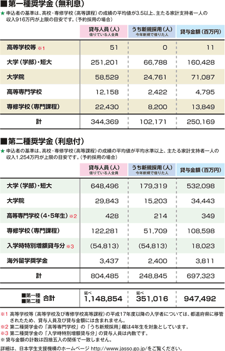 データ資料: 奨学金貸与事業<日本学生支援機構>