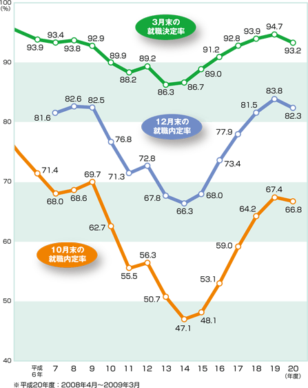 | 調査時期: | 各年の10月末現在、12月末現在、翌年3月(卒業月)末現在 |