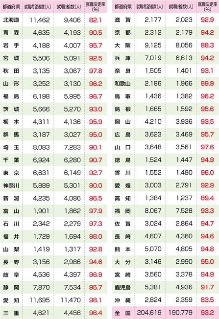 | 平成21年(2009年)3月高等学校卒業者の就職状況 |
