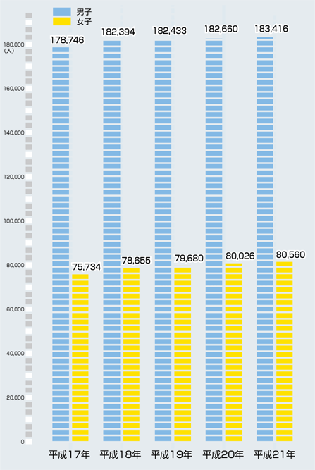※平成21年は、平成21年度学校基本調査速報(平成21年8月発行)より