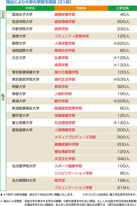 | データ資料: | 平成22年度開設予定の大学の学部等の設置届出一覧 |