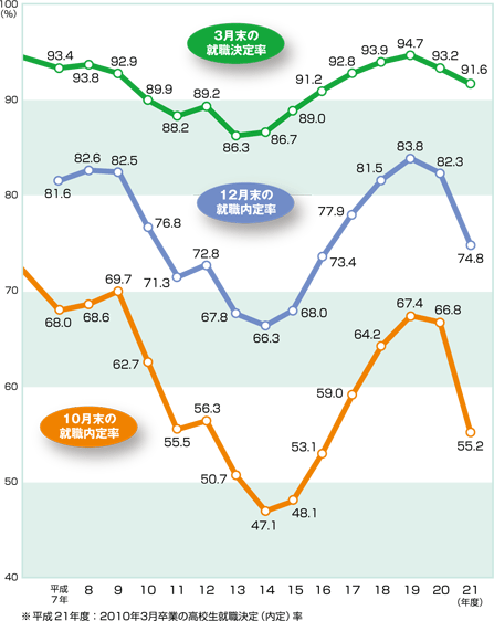 データ資料: 「平成22年3月高等学校卒業者の就職状況(平成22年3月末現在)に関する調査について」