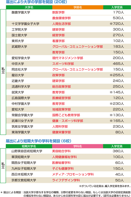 データ資料: 平成23年度開設予定の大学の学部等の設置届出一覧