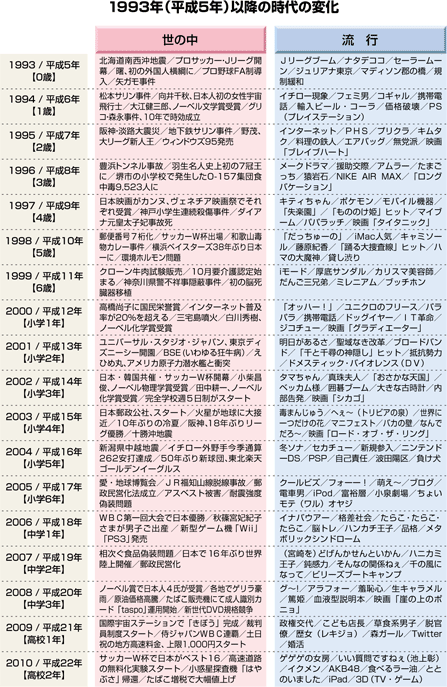 現在の高校3年生が生まれた年から、昨年までの「世の中」と「流行」をまとめました。彼らの人間像を理解するための一助としてご高覧いただければ幸いです。