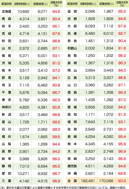 データ資料: 「平成23年3月高等学校卒業者の就職状況(平成23年3月末現在)に関する調査について」