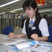 旅行会社の営業所で、パックツアーなどを販売する仕事です。お客さまの相談にのり、旅行が楽しくなるようアドバイスもします。