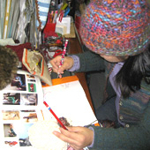 糸を編んでつくる洋服や小物をデザイン・製作する仕事です。それぞれのニットにあった素材や色などを考え、デザインをします。