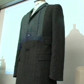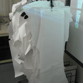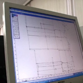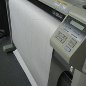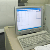 コンピュータの製図ソフトを使い、洋服の形を決める型紙を作ります。紙に描くよりも修正がしやすいといったメリットがあります。