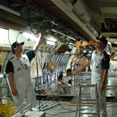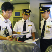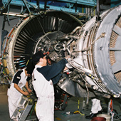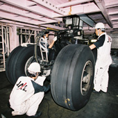 飛行機のエンジンやタイヤなどに問題がないか、くわしく調べて整備をします。飛行機の安全を支える仕事です。
