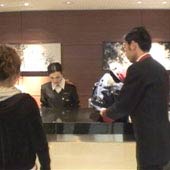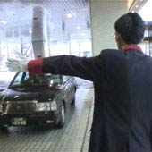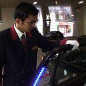 ホテルの入り口でお客さまを迎え、ドアの開け閉めや案内をします。ていねいな言葉づかいや、お客さまへの気配りが大切です。