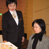 ホテルでの披露宴やパーティで料理などを運ぶ仕事です。参加した人が楽しく気持ちのよい時間を過ごせるようにサービスします。