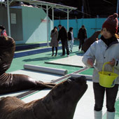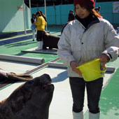 動物園や水族館が仕事場。イルカやアザラシなどの動物が、お客さまの前で楽しいショーができるように訓練や世話をします。