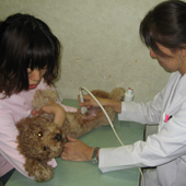 動物のお医者さんです。犬や猫などのペットや、牛・馬・羊・ブタなどが病気にかかっていないか調べたり、治療したりします。