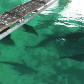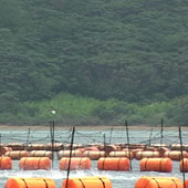 船に乗って海に出て、魚や貝、ワカメやノリなどをとります。また、いけすなどの施設を作り、魚などを育てたりもします。