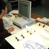 カーデザイナーが描いたスケッチをもとに、粘土やプラスチック、コンピュータの画像を使って、立体的に見本をつくる仕事です。