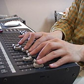 テレビや映画などの「音」を扱う仕事です。たとえばテレビでは、笑い声や拍手を収録後に付け足す作業も仕事の一つです。