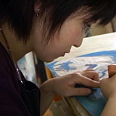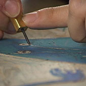 木版や石版などに絵を彫り、転写(うつしとる)ことで作品を描きます。日本画、洋画、風景画など、種類はいろいろあります。