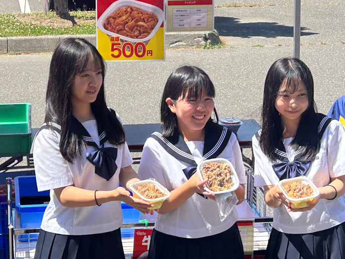 7月14日の昼休み、大手牛丼チェーンのキッチンカーが同校に到着。「めちゃくちゃ楽しみにしていた」という生徒たちが列を作り、牛丼を愉しんだ。全生徒の約8割が利用したという。
